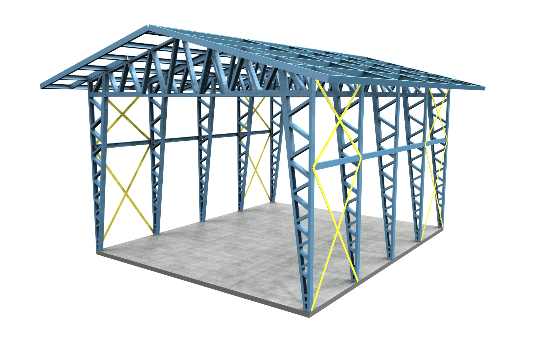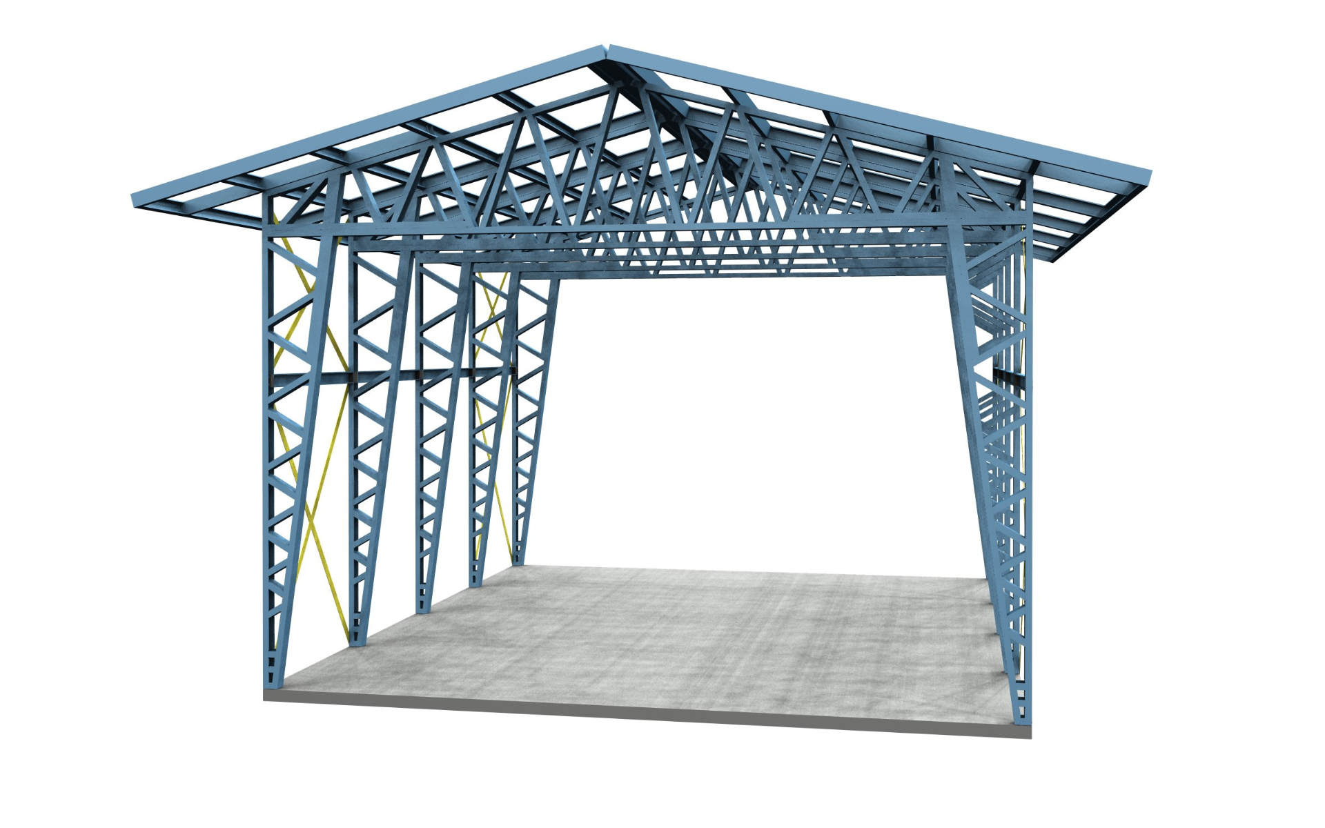 Kонструкция за навес с размери 5 метра ширина и 7 метра дължина, с обща площ 35 квадратни метра. Изработена от студено огънати C-образни профили, тази конструкция е идеална за покриване на автомобили, селскостопанска техника или други приложения.